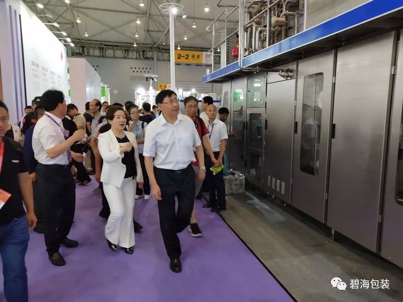 碧海公司董事長(zhǎng)厲善紅、副總經(jīng)理王立、副總經(jīng)理劉紅珍向參觀領(lǐng)導(dǎo)介紹了此次展示的BH7500-200SQ鉆石包型無菌紙盒灌裝機(jī),畢司長(zhǎng)高興地說:“我們?cè)趪?guó)產(chǎn)奶業(yè)包裝設(shè)備前拍照留念,為國(guó)產(chǎn)設(shè)備站臺(tái)!”