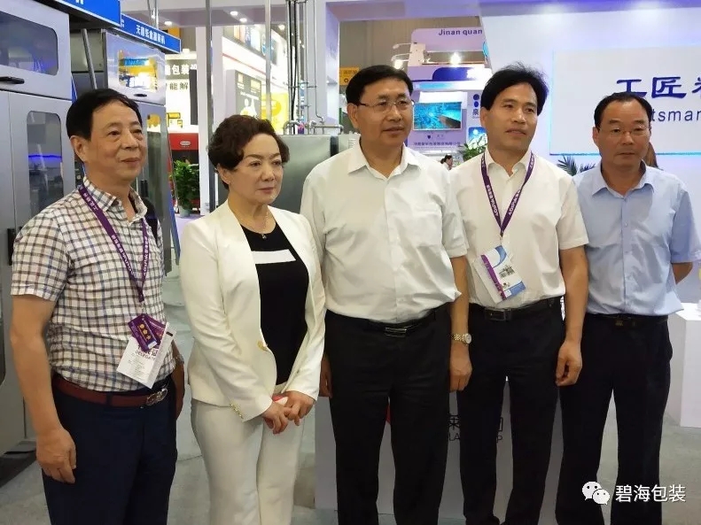 碧海公司董事長(zhǎng)厲善紅、副總經(jīng)理王立、副總經(jīng)理劉紅珍向參觀領(lǐng)導(dǎo)介紹了此次展示的BH7500-200SQ鉆石包型無菌紙盒灌裝機(jī),畢司長(zhǎng)高興地說:“我們?cè)趪?guó)產(chǎn)奶業(yè)包裝設(shè)備前拍照留念,為國(guó)產(chǎn)設(shè)備站臺(tái)!”